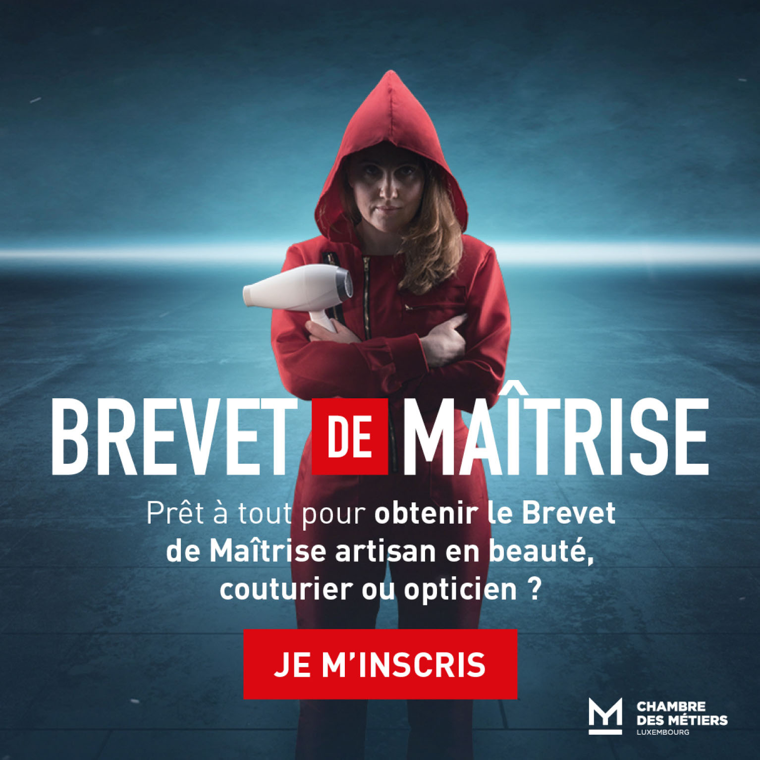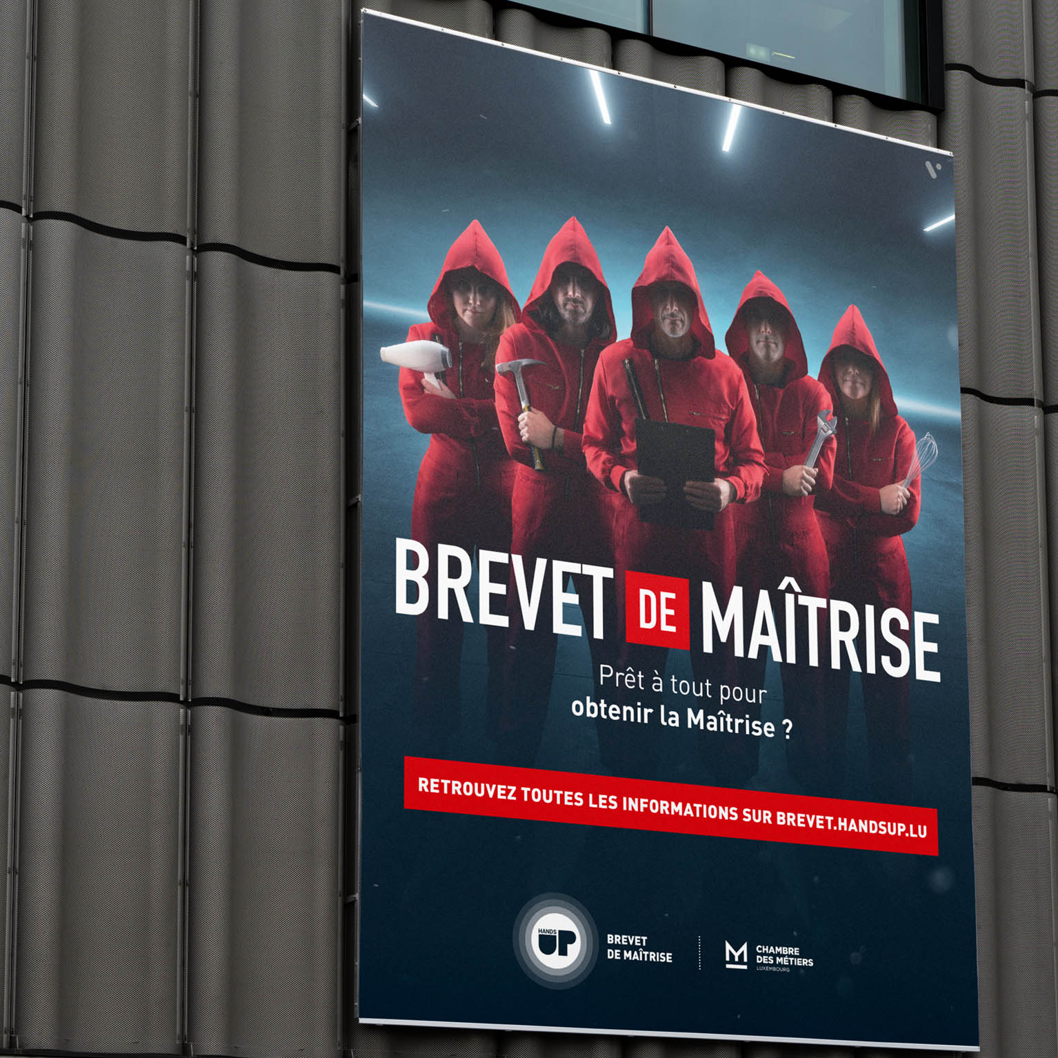 Après la campagne pour le Brevet de Maîtrise conçue en 2019 autour de l’univers de Game of Thrones, la Chambre des Métiers et VOUS Agency ont de nouveau collaboré pour la création d’une nouvelle campagne pour le même diplôme, cette fois-ci inspirée de la série Casa de Papel.