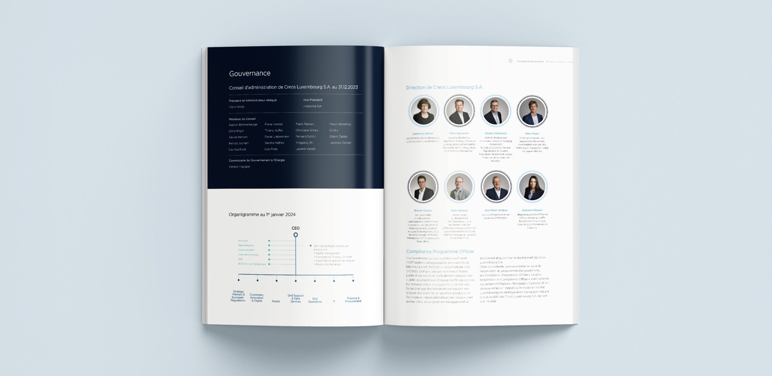 Creos a de nouveau confié la réalisation de son rapport annuel à VOUS Agency. Pour cette édition 2023 déclinée en vidéo, le choix a été, parmi plusieurs propositions graphiques, de s’orienter vers un univers plus foncé et plus technologique, tout en conservant les codes graphiques de la marque.