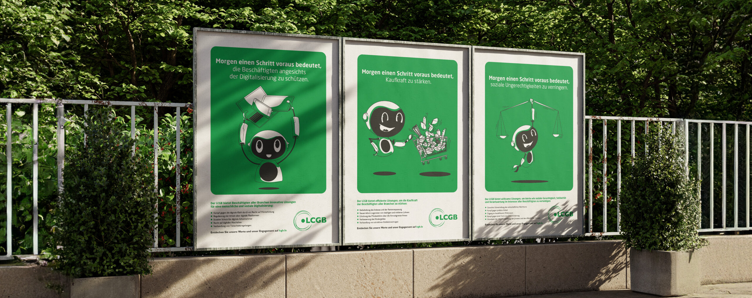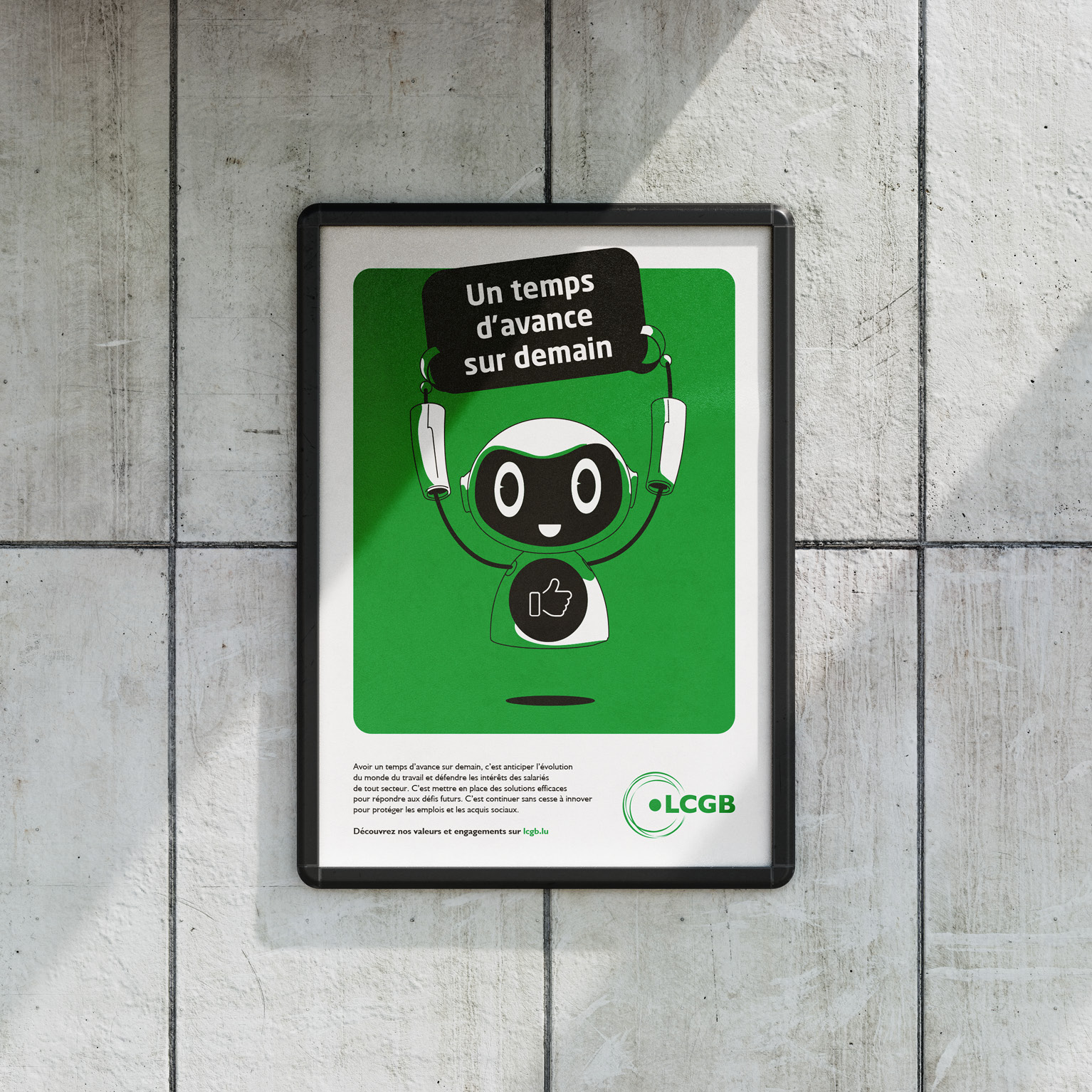 Le LCGB souhaitait lancer une campagne de communication en deux vagues pour accroître sa visibilité, mieux faire connaître ses actions et ses valeurs, renforcer sa présence et informer sur son engagement face aux défis contemporains. En mettant notamment en avant deux thématiques essentielles : la « Digitalisation humaine » et « L’Homme au centre de son action », le syndicat s’était fixé comme objectif final d’obtenir le plus de représentants élus dans les entreprises lors de élections sociales de mars 2024.