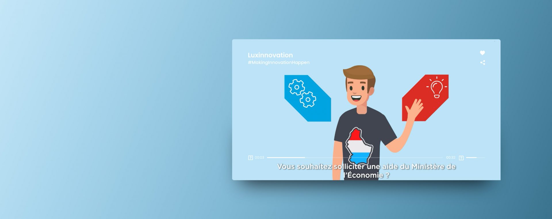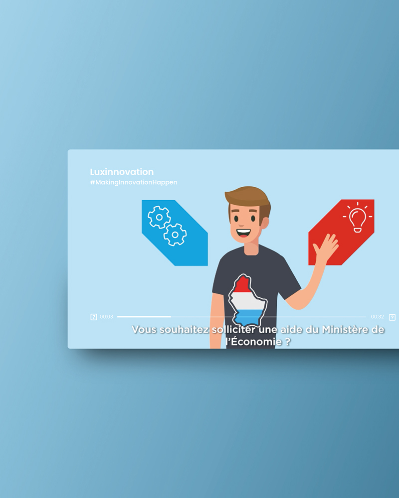 Luxinnovation s’est tourné vers les compétences de VOUS Agency pour réaliser une vidéo informative à destination des personnes porteuses d’un projet d’innovation et souhaitant formuler une demande d’aides auprès du ministère de l’Écono¬mie.