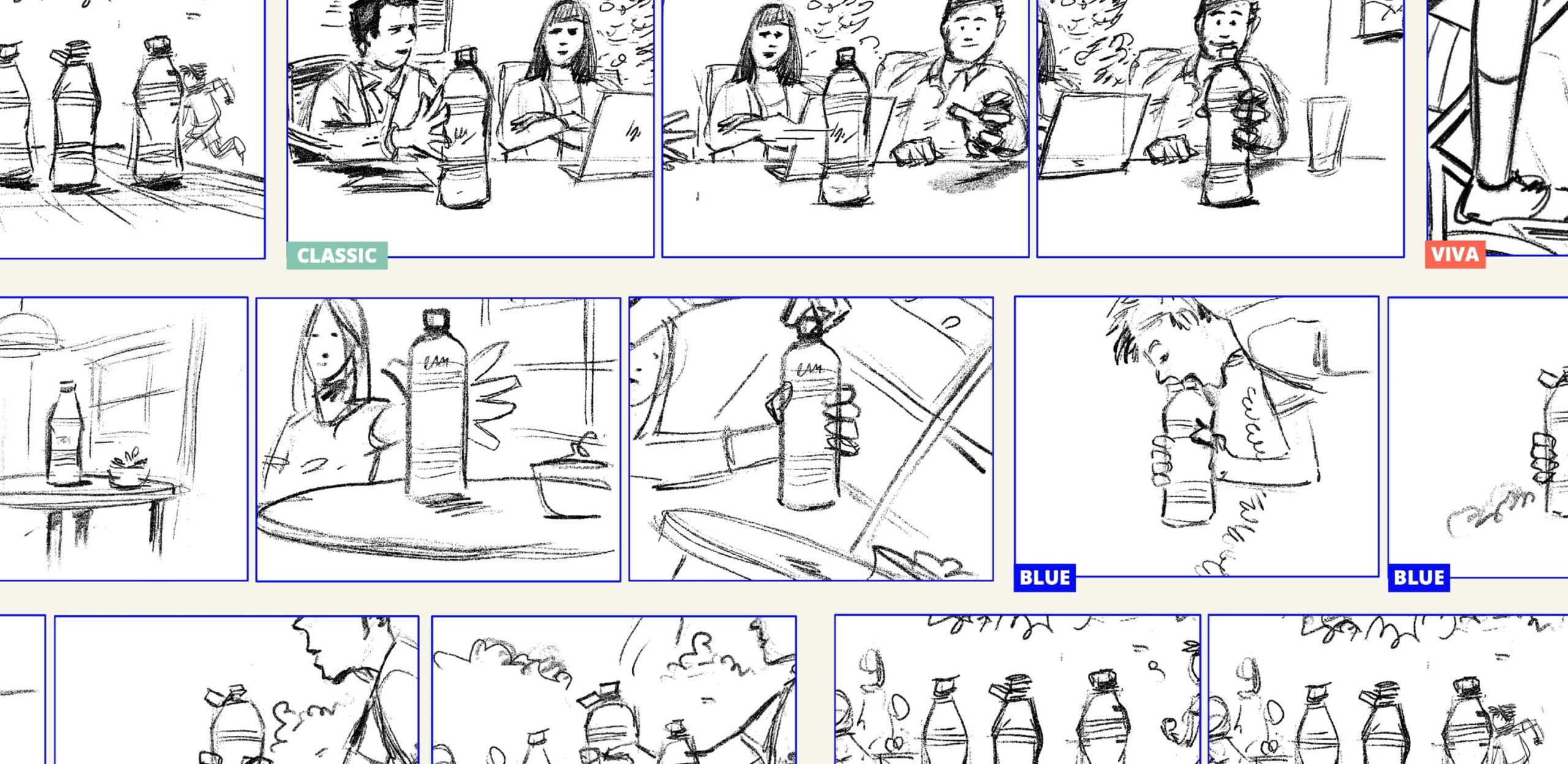 Pour appuyer ce message, le concept proposait de mettre en scène la bouteille via une technique de réalisation consistant à fixer un objet toujours au même endroit du cadre. Cette principe a permis de mettre le produit au 1er plan tout en concrétisant visuellement l’idée du monde qui tourne autour.
