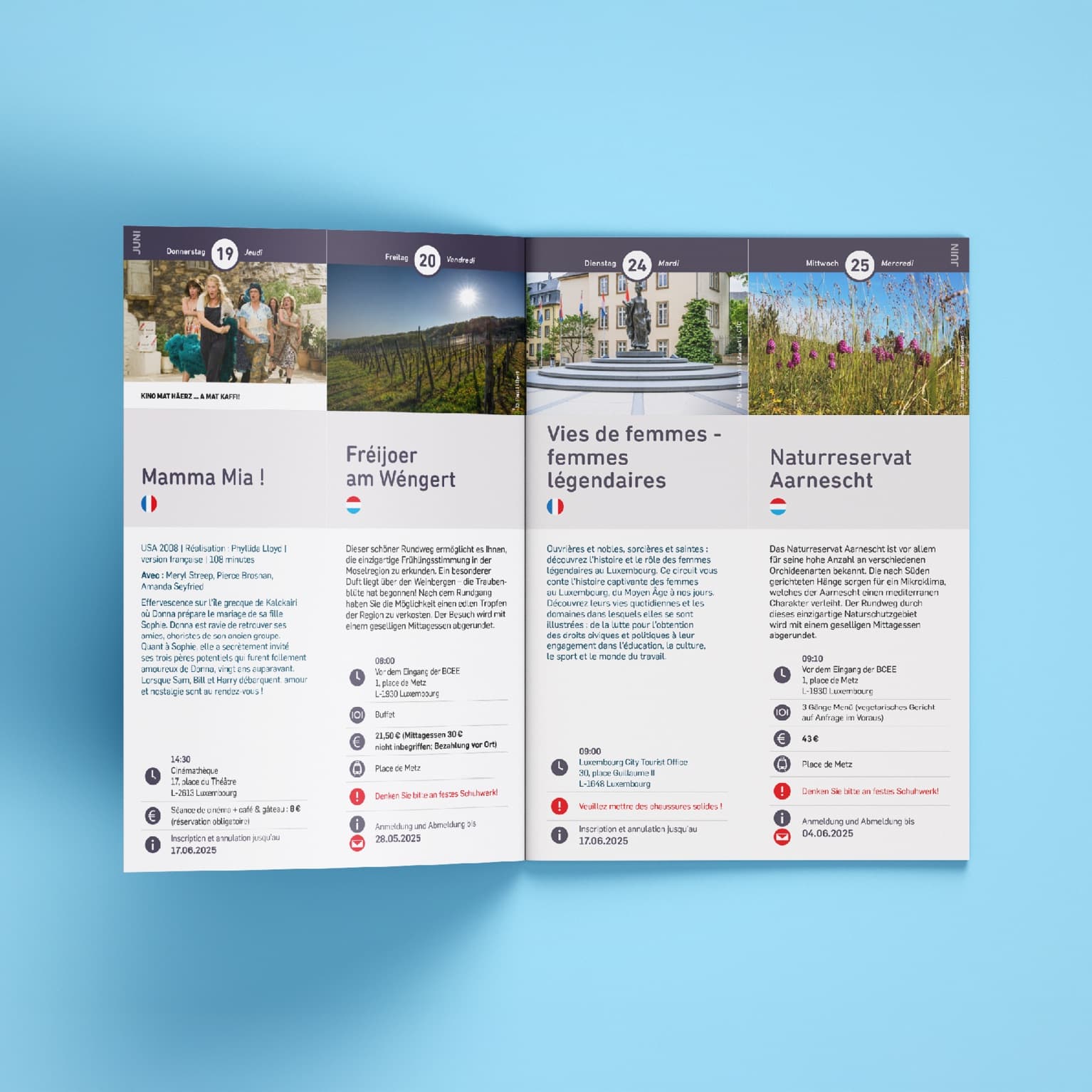 Flyers, affiches, dépliants ou brochures… VOUS Agency accompagne la Ville de Luxembourg dans ses prises de parole avec clarté et cohérence graphique.